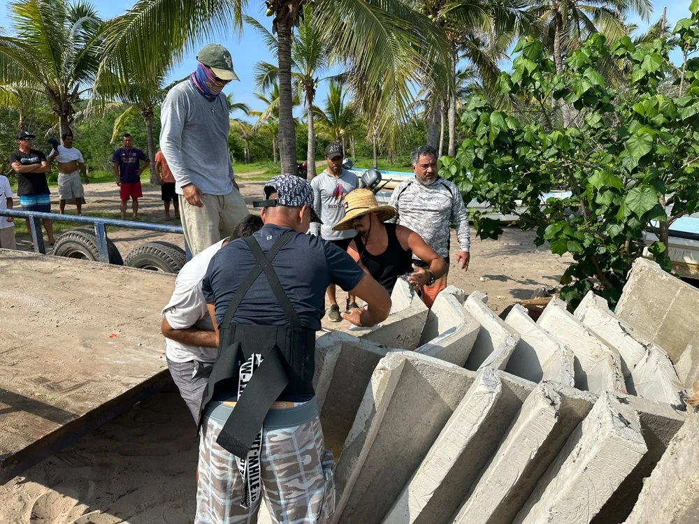 For the past months, the Chamela fishing cooperative worked hard to construct the first set of habitat structures for lobsters, to be placed in and near the fishing refuge. The structures will serve as artificial reefs, to give lobster and other marine life a place to hide, live, grow, and reproduce. The process has been a learning experience, from construction to transportation and placement of the heavy structures. They needed to be heavy to stay in place on the ocean floor, even in locations where the surge and waves are strong. The concrete material has also been mixed with the right materials to attract growth or plants, and coral.